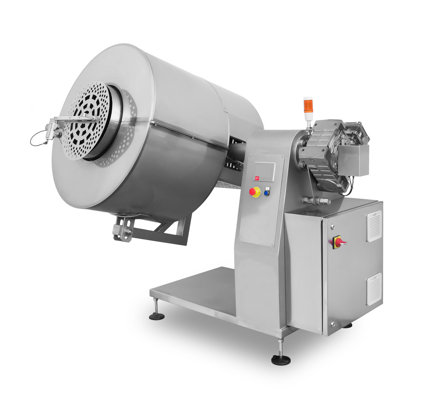 - Coating pan tipping system for unloading the product and adjusting the tilt of the coating pan during operation to improve coating;