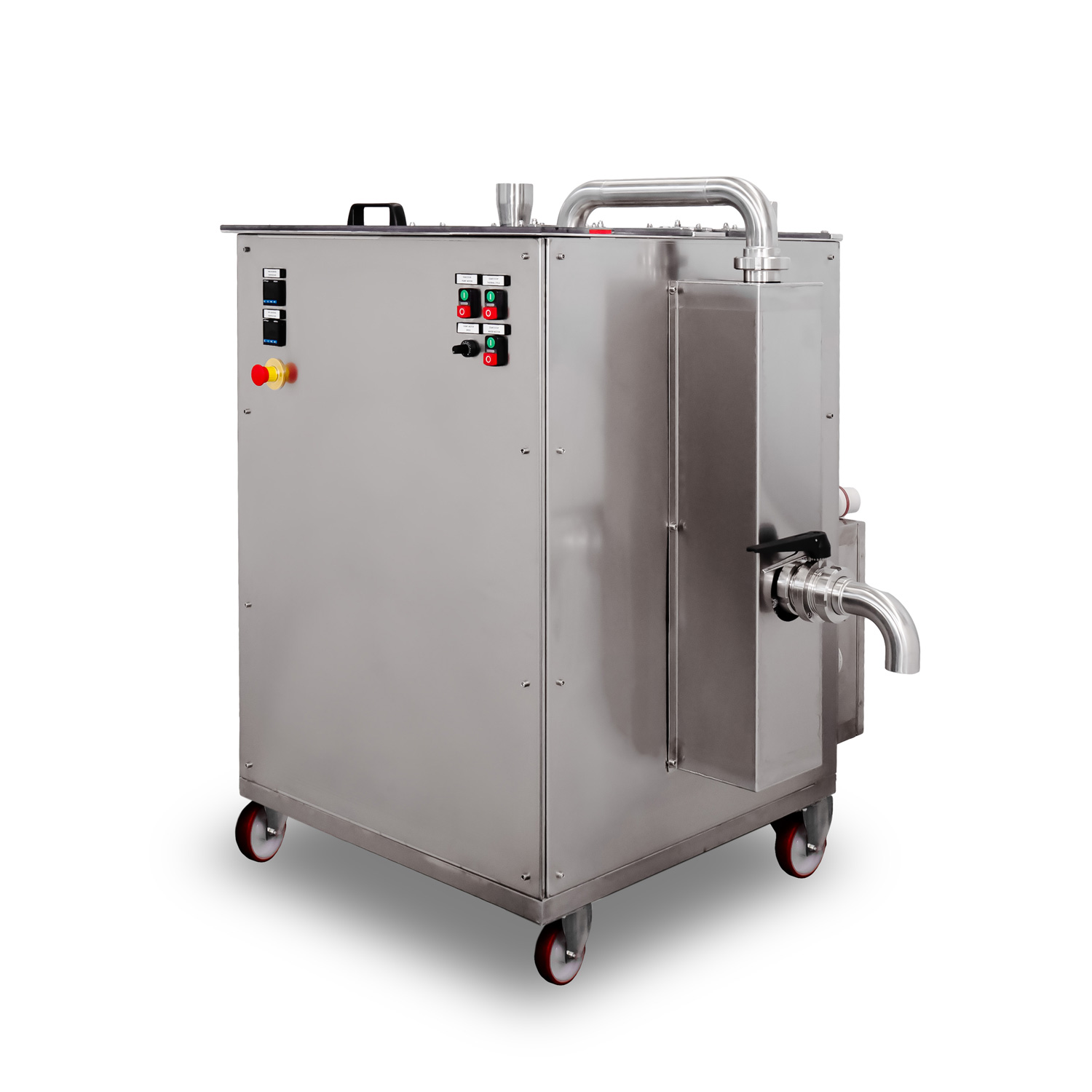 La cuve chauffée électriquement, d'une capacité de 150 kg, est équipée d'une pompe volumétrique professionnelle pour assurer une circulation constante du produit. Le système de conchage interne est équipé de doubles rotors orbitaux rotatifs qui enveloppent le chocolat dans un vortex continu et contrôlé.